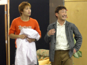 連日の稽古で緊張感の高まる中、代表:高木渉より劇団員にあったかーいトン汁&おにぎりが振舞われた。 鬼の様にむさぼる劇団員達・・・。 うまいっ!うますぎる!! おぉっ! 七味まで持ってきてくれたんですね!! ありがとうございまっす!! たらふく食った団員達は、重くなったお腹を抱え、再び稽古に戻っていった。 完 |