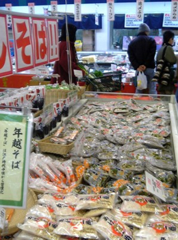 彩り鮮やかな写真をいっぱい撮ったのですが、一枚しか日記に載せられないのに気付き、その中からちょっと地味ですがせっかくなので年越しそばコーナーを載せてみました。ちょっと分かりづらいですが凄いんですよ、そばだらけで(笑)・・・きっと次の日記当番である大西くんは、年明けにおせち料理の写真を載せてくれることでしょう(笑)