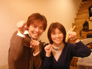 (photo 招き猫〜〜♪本日事務所当番のトモと私。渉は間に合わなかったのだ)